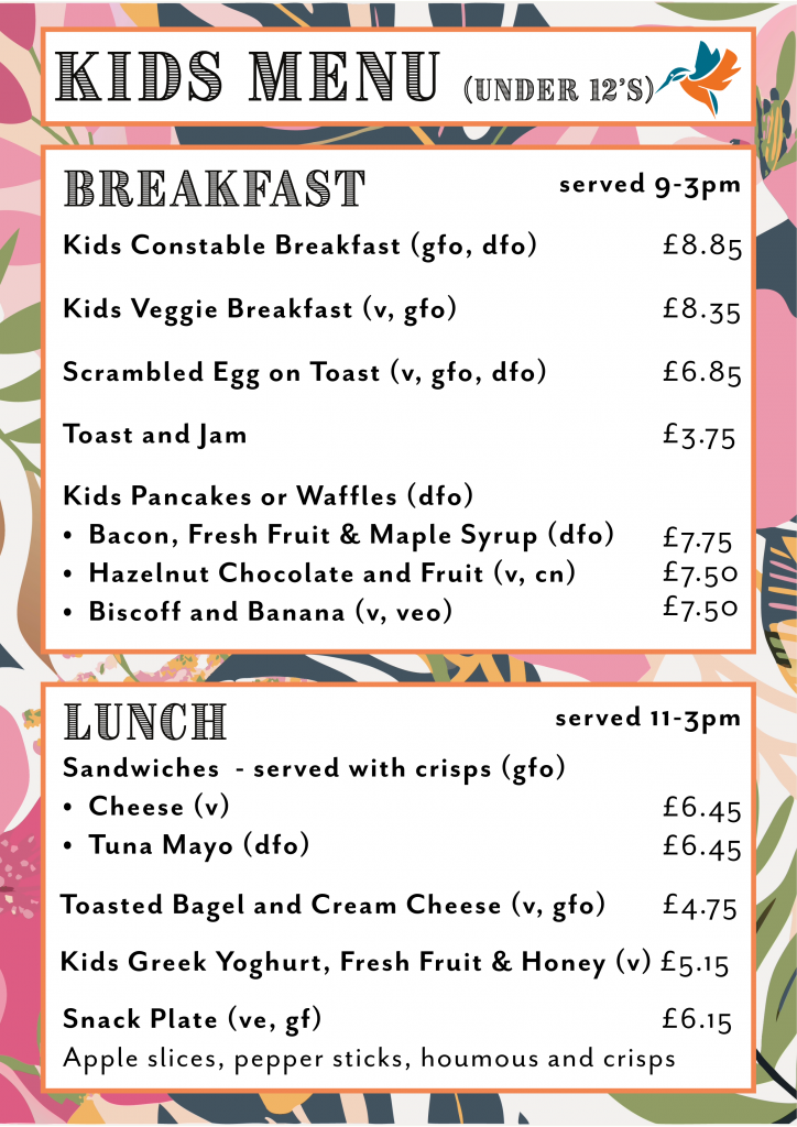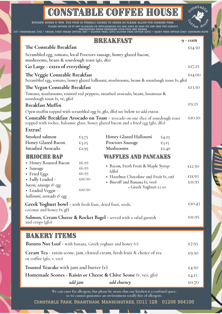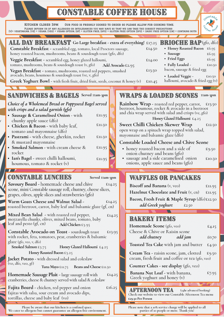 Coffee House Table Bookings – For on the day bookings please call 01206 984100